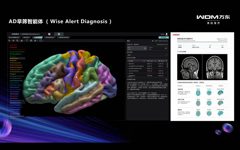中国有超1500万阿尔茨海默病(AD)患者,80%确诊时已至中晚期。根本原因之一,是长期沿用欧美脑结构标准。万东初代MR智能体,是国内首个基于中国人脑数据的智能诊疗产品,依托全国34省近5万例健康人群MRI数据,构建了中国人脑专属识别模型,真正实现“用中国尺,量中国脑”。