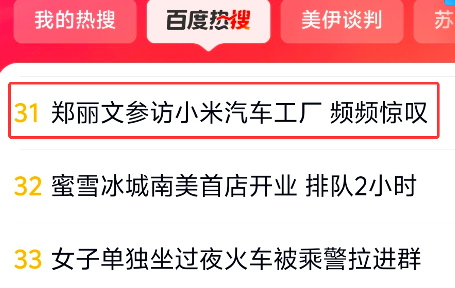 “郑丽文参访小米汽车工厂频频惊叹”冲上百度热搜