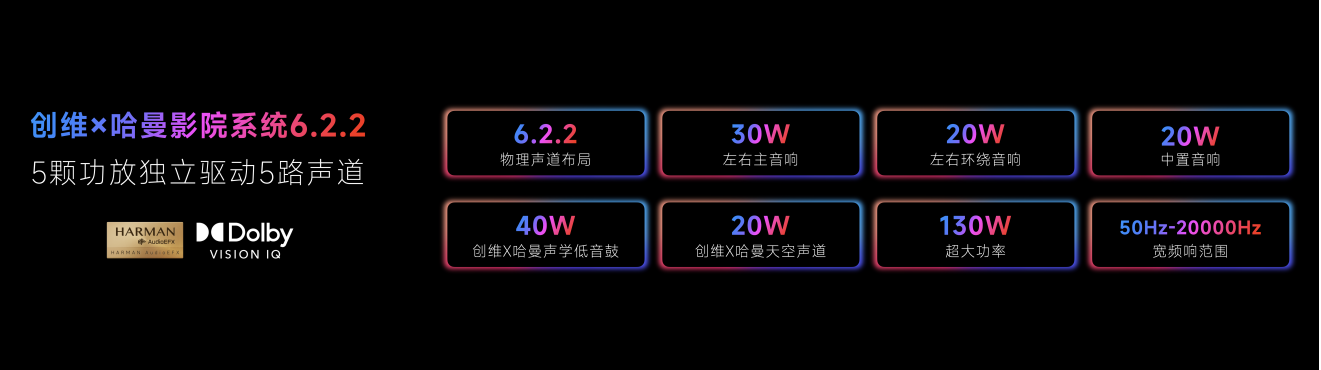 音质方面,创维A10H系列同样达到了“超旗舰”标准,配备了双回音壁「创维x哈曼影院系统6.2.2」,行业首发五向发声技术,双重低音+双天空声道的强悍配置,确保在观影追剧、游戏娱乐、幼教动画等各类场景中都能有立体环绕的声音效果,让听感如临境般真实。