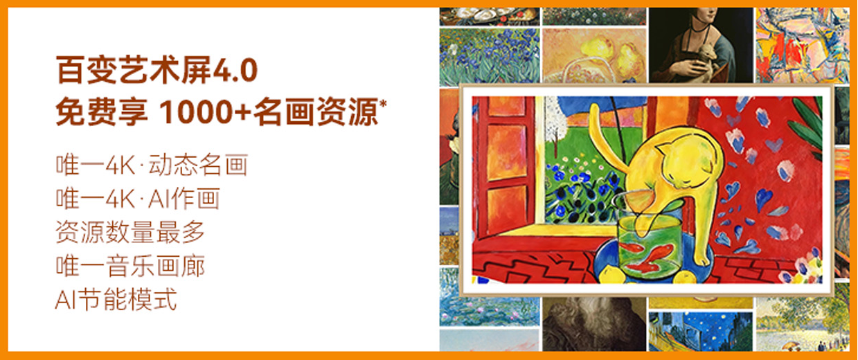 壁纸电视即使在不用的时候,也不应该是一块“黑屏”,而是要像真正的画作一样悬于墙面。为此,创维A8H系列内置了行业领先的「百变艺术屏4.0」,超过1000幅世界经典名画均可终身免费使用,让墙面变身流动的“家庭艺术展”,轻松“拿捏”客厅艺术氛围。