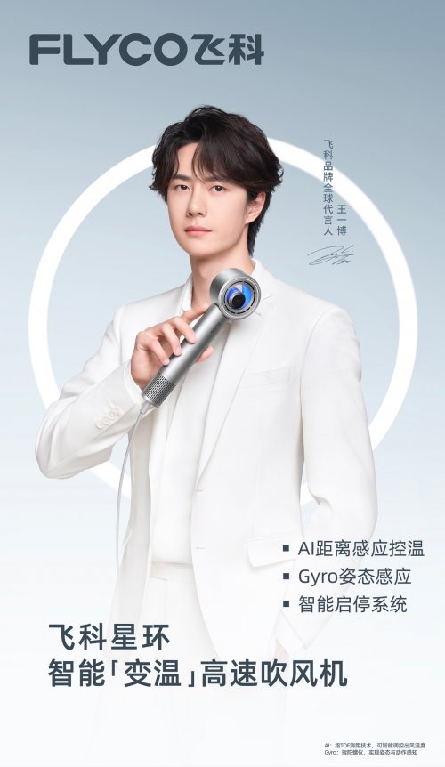 伴随飞科星环智能高速吹风机的正式发布,青年演员、歌手王一博同步出任品牌全球代言人。